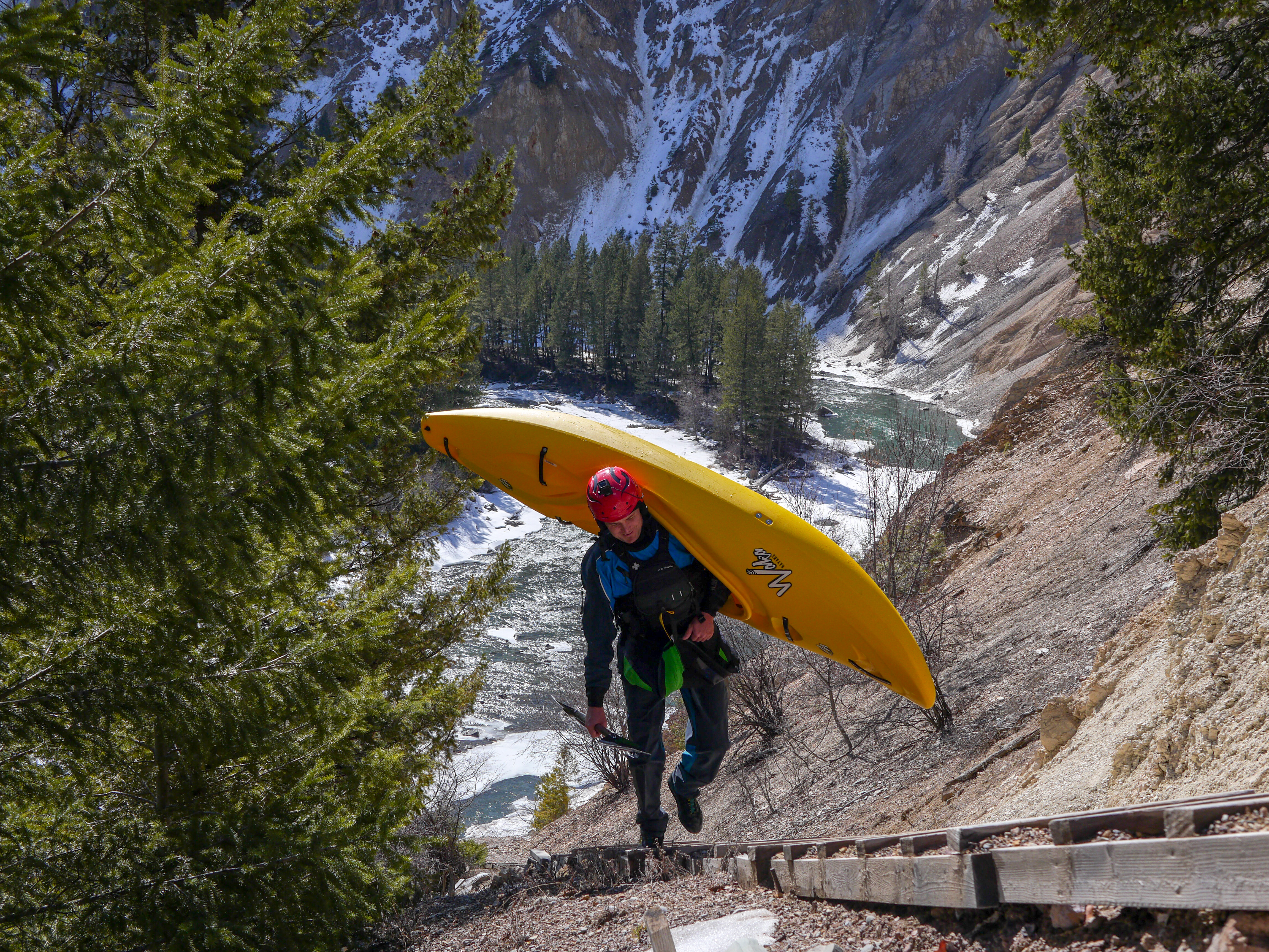 Luckily below Triple Drop is a big pool so even if you did swim rescue would be easy. The portage around Triple is the go to line for most people but requires a lot of effort and turns a lot of people off the Upper Elk. If you want to portage you’ll have to choose from a number of routes on either side of the river. The standard portage route is right above the rapid on the left. Walk along the cliff until it ends, there’s a chain ladder there to make climbing down easier. Climb down and find the best spot to seal launch. If this portage is a bit stout for you you’ll have to take one of the longer ways around.