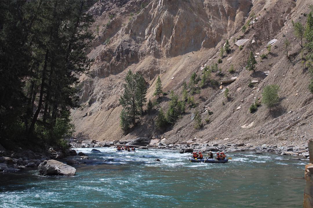 The next several bends in the river bring a number of easier class II and III rapids. At high water these rapids are short splashy class III pool drop but at low water you’ll need to do more rock dodging than crashing through waves. After a few kilometers the canyon begins to tighten up and you are approaching the canyon rapid. “The Canyon” is the biggest rapid on the run. The Canyon begins with big boily eddies in a tight canyon before the entire river all goes into a big crashing wave. Some more boils follow before a big pool at the end of the rapid.