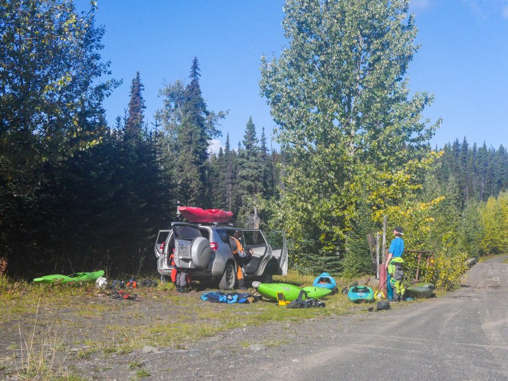 The put – in is easy, if you’re heading north on the Dease Lake Highway it’ll be a left turn on a logging road called Willow Creek. It’s only about 2 kilometers from here down to the river. There is a pull off right before a bridge and, when we did the run, there were no gates between this put-in and the highway so no chance of being locked out or worse locked in.