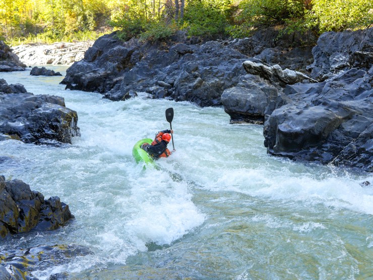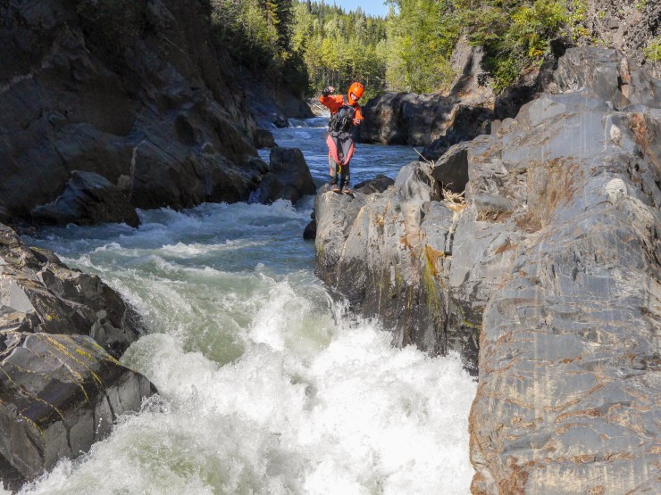 The run starts off pretty slow, meandering through about 15 km of flat water and boogie. The whitewater slowly starts to build with a few class III/IV rapids in some interesting canyons. We saw a big black bear fishing in the first rapid so keep your eyes peeled for wildlife. The rapids continue to build as the river canyon gets deeper. After about 5 km of sporadic class III/IV drops you’ll begin to get into some harder rapids.